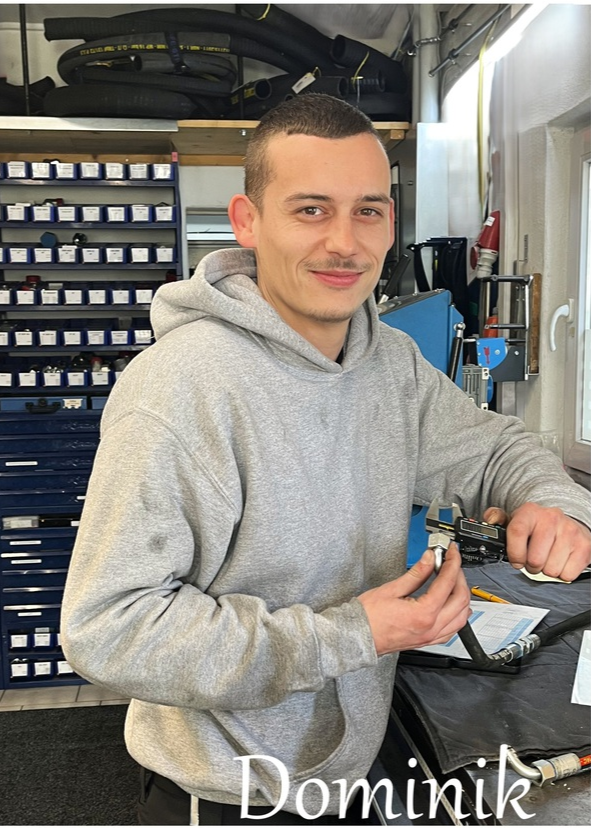 Im Juni 2019 haben wir unser TEAM dann nochmals verstärkt. Mit David haben wir einen kompetenten und zuverlässigen Mitarbeiter an unserer Seite, welcher nicht nur Hydraulikschläuche fertigt, sondern auch gerne beim Aus- und Einbau behilflich ist. Durch seine Teilnahme an Hydrauliklehrgängen hat er sich als befähigte Person qualifiziert und das Fertigen von Hydraulikschlauchleitungen erlernt. Er hat sich sehr großes Fachwissen, vorallem im Bereich der Verschraubungstechnik und diversem Hydraulikzubehör angeeignet.